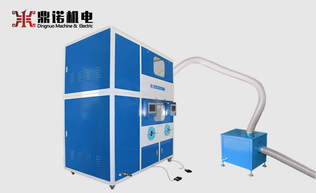 1、該款充絨機(jī)有四個充絨口,可獨(dú)立定量和充裝。利用高壓氣體吸取絨、棉,通過全自動稱重系統(tǒng),將設(shè)定克重的絨、棉精準(zhǔn)的充入裁片。