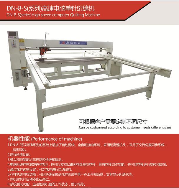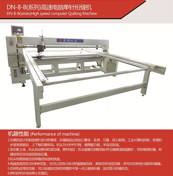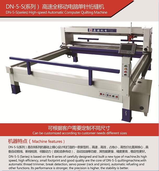 DN-8與DN-5的主要區(qū)別在于移動(dòng)方式,DN-8是機(jī)頭橫向移動(dòng)+被框前后移動(dòng),DN-5是機(jī)頭實(shí)現(xiàn)橫向與前后的移動(dòng)。因此DN-8的占地面積較DN-5大,但 也是由于移動(dòng)方式的不同,DN-8的高速性能優(yōu)于DN-5。