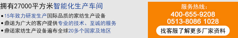 我司-江蘇鼎諾機(jī)電有限公司,家紡設(shè)備源頭制造商!憑借地處南通國際家紡城-行業(yè)產(chǎn)業(yè)帶的地理優(yōu)勢,潛心經(jīng)營十余載,專業(yè)服務(wù)中大型家紡生產(chǎn)企業(yè)1000+,積累了豐富的技術(shù)儲(chǔ)備【ISO9001/CE雙認(rèn)證】。