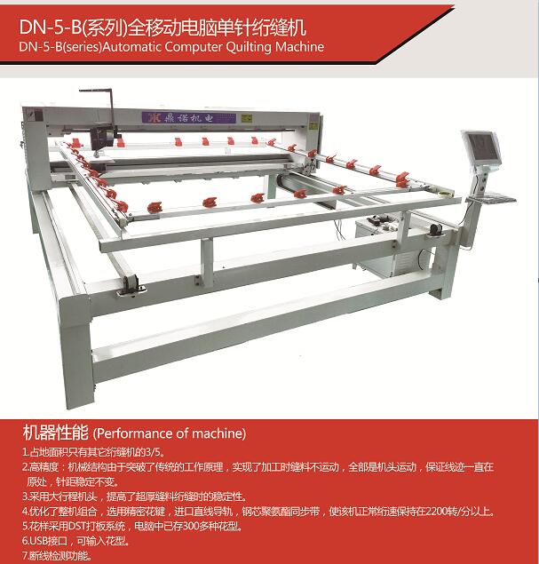 DN-8與DN-5的主要區(qū)別在于移動(dòng)方式,DN-8是機(jī)頭橫向移動(dòng)+被框前后移動(dòng),DN-5是機(jī)頭實(shí)現(xiàn)橫向與前后的移動(dòng)。因此DN-8的占地面積較DN-5大,但 也是由于移動(dòng)方式的不同,DN-8的高速性能優(yōu)于DN-5。